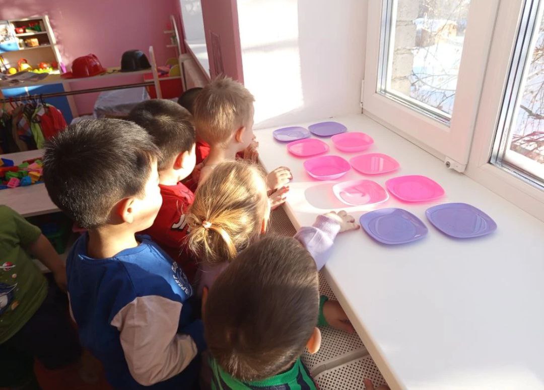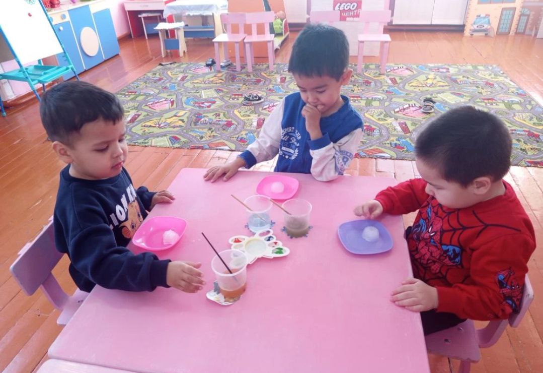 4. Окрашенную воду вынести на улицу, посмотреть что с ней случится, какого цвета будет лед. Также оставить в группе лед и посмотреть во что ж превратиться.