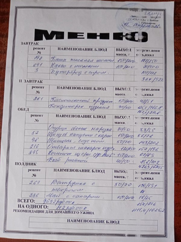 Нормы выдачи продуктов